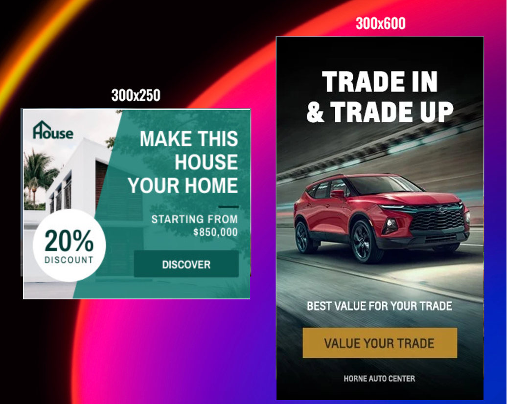Ad formats available 300x250, 300x600, 320x480, 970x250